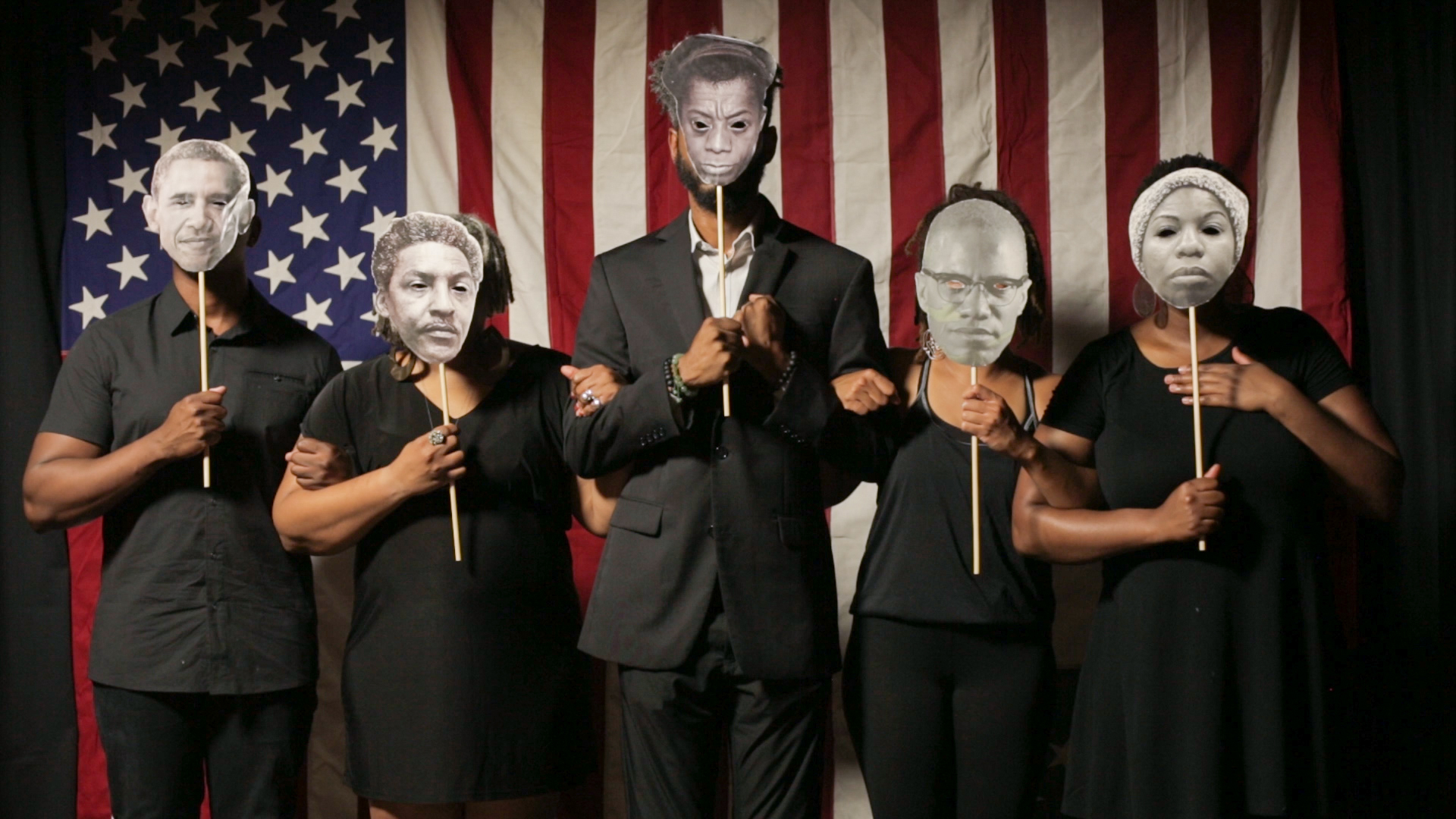 Cobo Hall in Detroit, commissioned yours truly to bring my work to life and thus it was. With the help of the brilliant Jamin Townsley, behind the camera and Detroit’s finest (Scheherazde Washington Parrish, Evan Parrish, Joel “Fluent” Greene, Tawanna Pettey, Nandi Comer, Sydney G. James and the state diva of the Empire of Detroit, LaShaun Pheonix Moore) I created “American Gods: N/A). The short film is a meditation examining the fallibility of Americana by placing blacks at the forefront of its narrative. Between three acts a mother mourns her fallen son evoking Michaelangelo’s "Pietà", a diva sings the Black National Anthem, Lift Every Voice and Sing, a requiem for America, to an empty church. The third act shows a group of five artists/activist uniformed in all black donning the masks of their philosophical counterparts. Using the American flag to tie these scenes together, American Gods: N/A addresses issues of gun violence against black males, the separation of church and state or the state as church and historical/contemporary black activism.